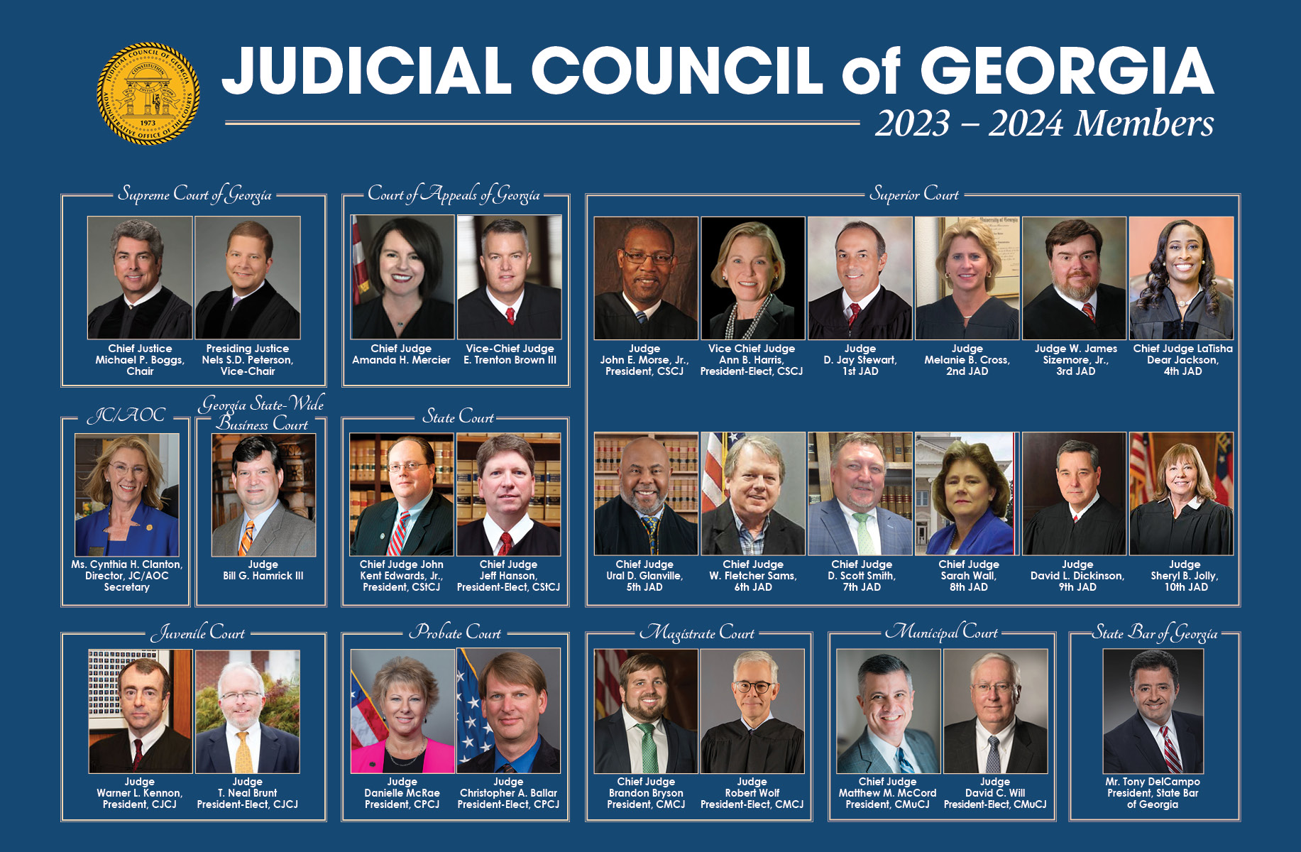 - The JC is chaired by the Chief Justice of the Supreme Court of Georgia and includes 28 members who represent every class of court and the State Bar of Georgia